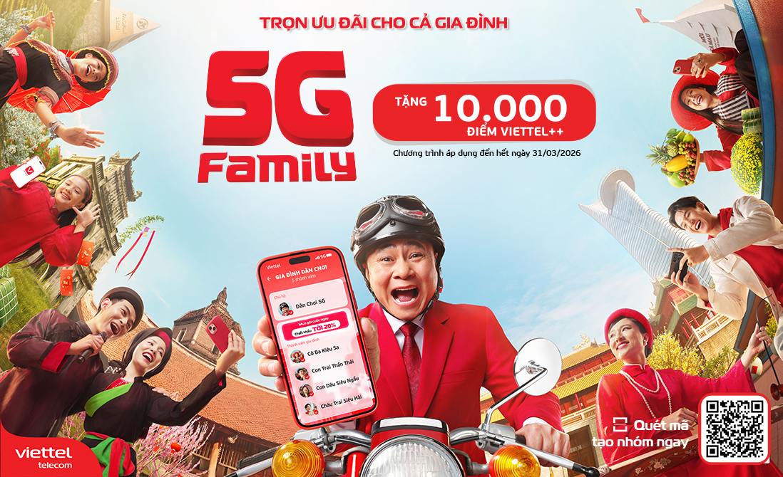 Nhằm giúp các gia đình tối ưu chi phí sử dụng các dịch vụ viễn thông, Viettel triển khai chương trình gom nhóm hộ gia đình (5G Family) và tặng 10.000 điểm Viettel++ cho mỗi thuê bao di động tham gia thành công.